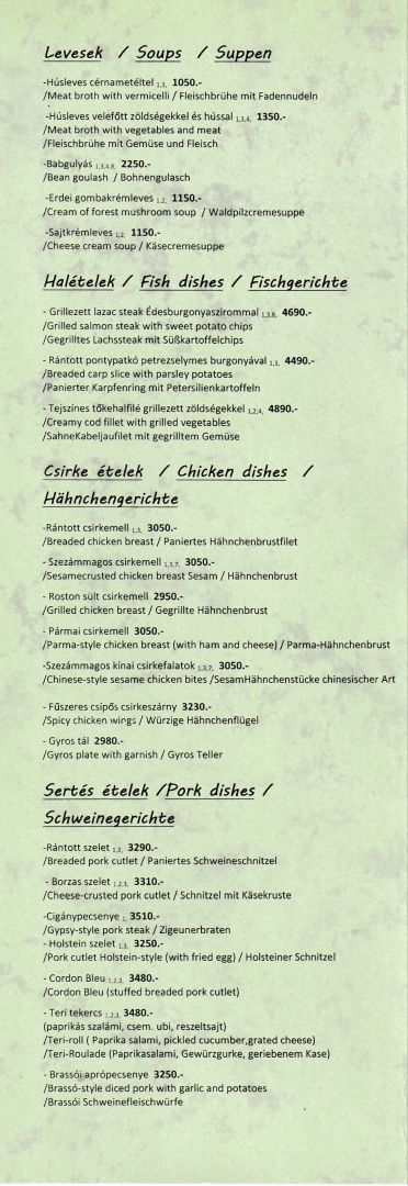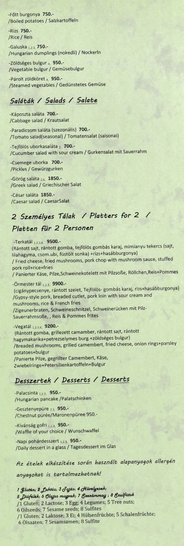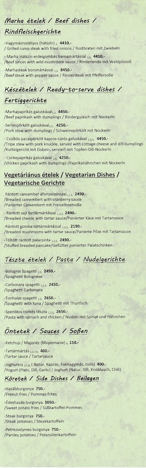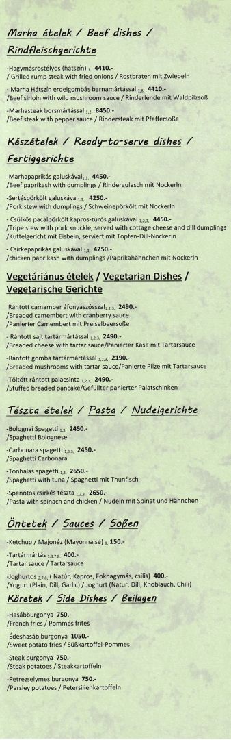 Szállóvendégeink részére az étteremben igény szerint bővített kontinentális reggelit, félpanziós- illetve teljes ellátást is biztosítunk. Ezen kívül lehetőség van napi menü továbbá a la carte ételek elfogyasztására és tálak rendelésére is. Ételallergia esetén kérjük, előre jelezni szíveskedjenek. Csoportok, rendezvények lebonyolítását is vállaljuk. Finom ízek, családias hangulat, frissítő italok, barátságos kiszolgálás.